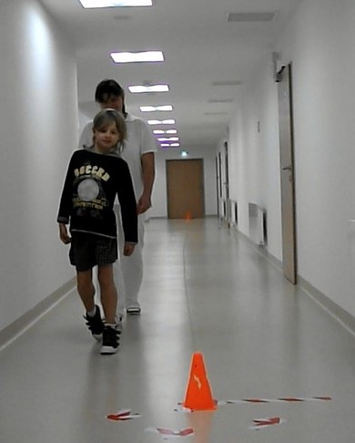 Obrázek 3: Provedení 6MWT, dítě je doprovázeno terapeutem.