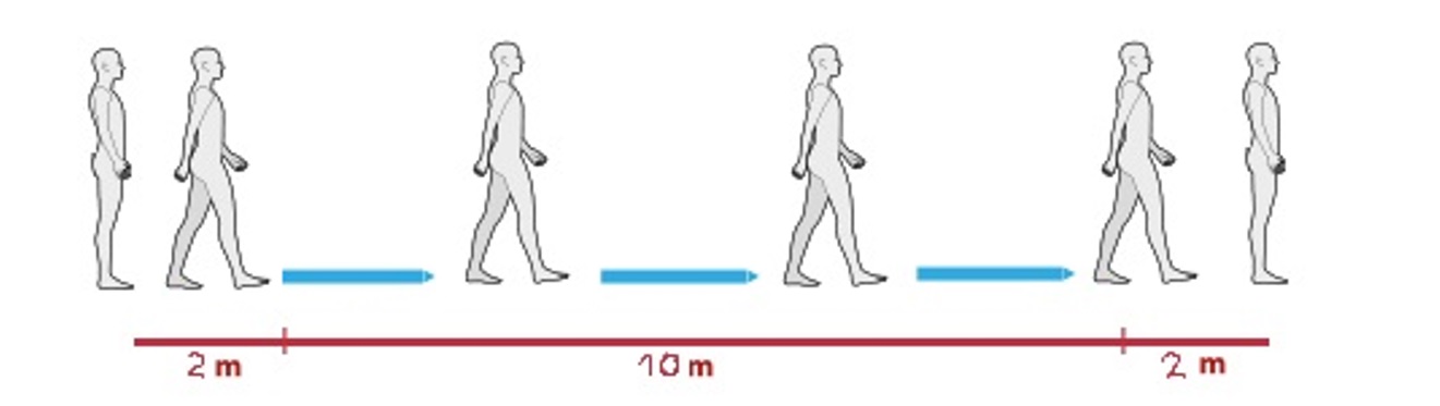 Dalším rozdílem je měřená vzdálenost. V některých studiích je celková trasa 10 m a měří se čas vnitřních 6 m, v jiných je celková trasa 14 m a měří se vnitřních 10 m (obrázek 6). Vzhledem k tomu, že se výsledek započítává na metry za sekundu, nemusí se jednat o zásadní problém. Pokud budeme chtít srovnávat data s jinými studiemi, je vhodné k tomuto přihlédnout a používat stejnou vzdálenost.