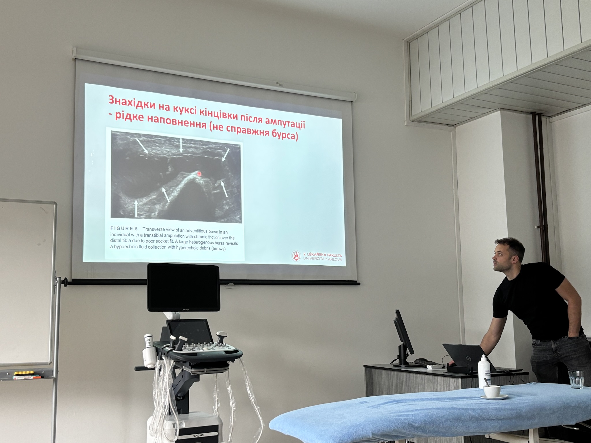 Podíleli jsme se také na třech projektech zdravotně-humanitárního programu Medevac Ministerstva vnitra ČR. Šlo o akce zaměřené na péči o pacienty zraněné v důsledku násilí a později (2024) zejména na praktické vzdělávání lékařů rehabilitačních center Unbroken Ukraine a Superhumans Center v oblasti sonografie hybného systému. Lékaři z těchto velkých zdravotnických center, která pečují o oběti válečného konfliktu, trénovali v malých skupinách zobrazení svalů, šlach, nervů či kostních povrchů. Byly prezentovány příklady patologických sonografických nálezů a možnosti využití sonografie při hodnocení pacientů po amputaci končetiny. Na žádost ukrajinské strany se v létě 2025 konalo pokračování stejného kurzu. Tyto vzdělávací akce byly pořádány ve spolupráci s 2. lékařskou fakultou UK a FN Motol.
